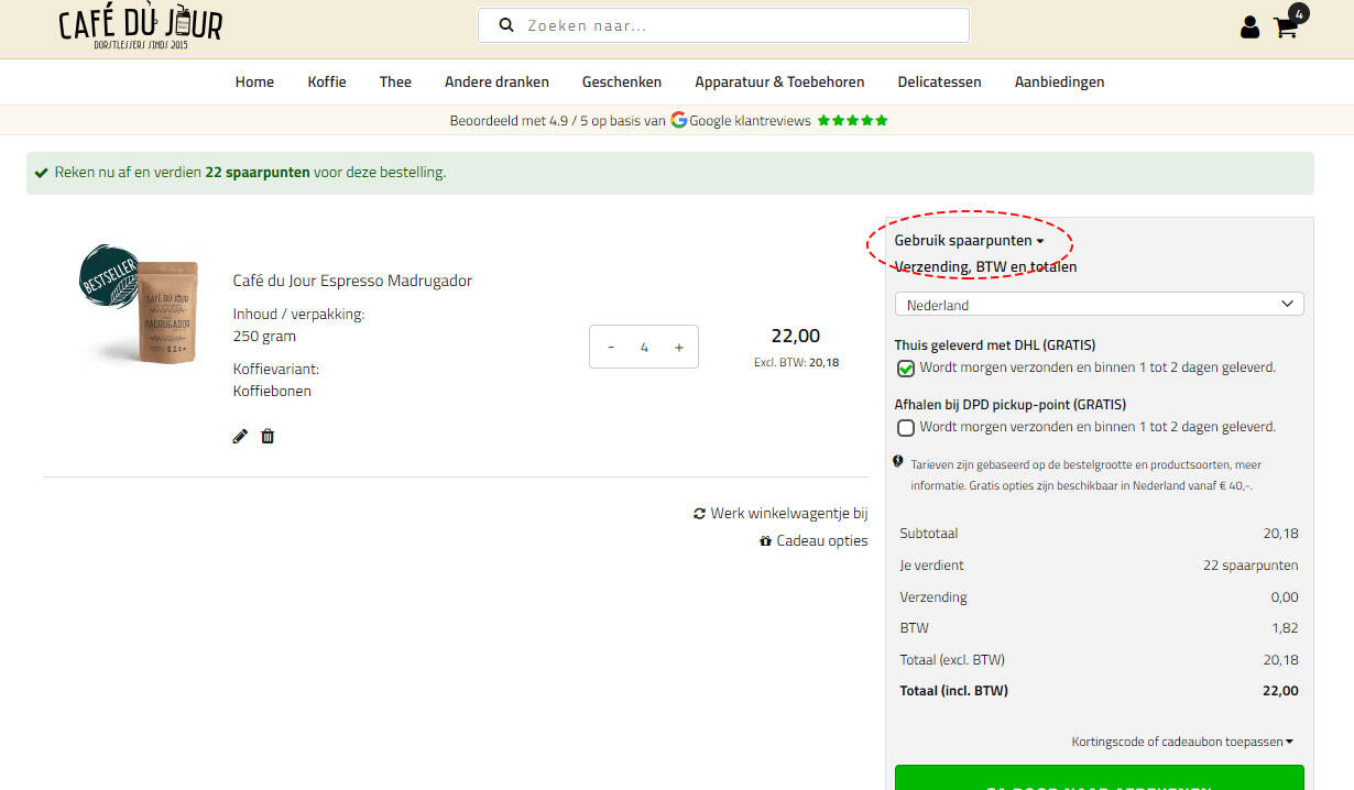 Podes trocar os teus pontos acumulados através do carrinho de compras por desconto na tua encomenda. Isto só é possível se o valor da encomenda for superior a €10,-. No teu carrinho de compras, verás no canto superior direito a opção "usar pontos de fidelidade" (acima do bloco dos custos de envio) se tiveres pontos suficientes. Cada ponto de fidelidade representa um valor de €0,01 e podes escolher tu mesmo quantos pontos queres usar para desconto.